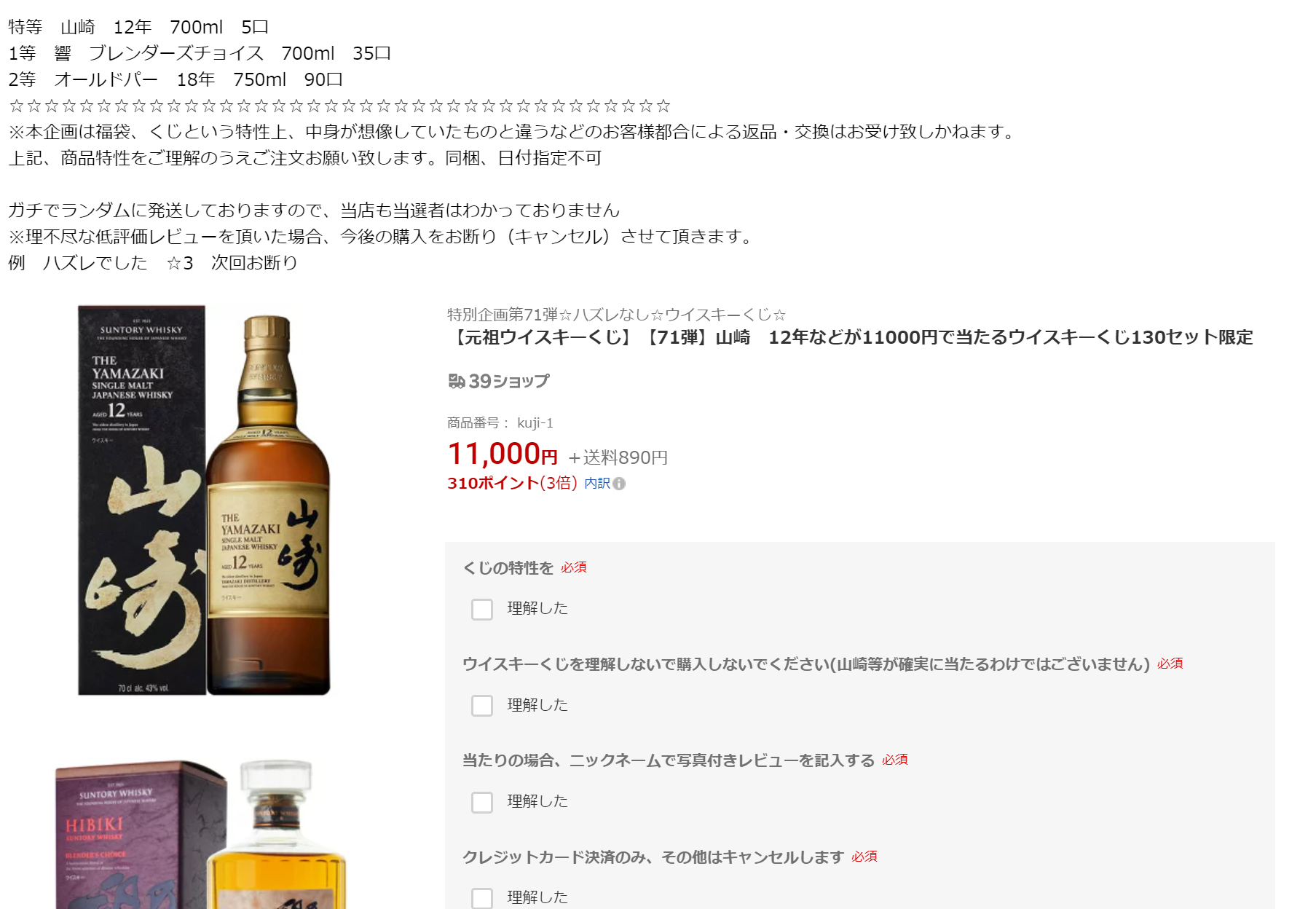 에서 ウイスキーくじ 라고 검색하면 여러개 나옵니다.